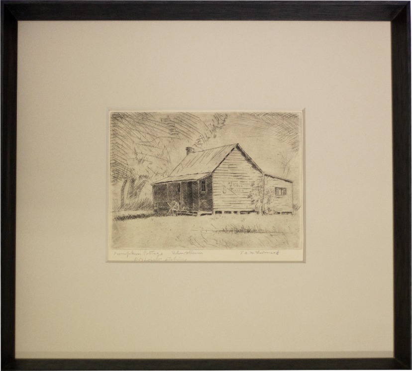 Collection » T. A. McCormack PUMPKIN COTTAGE SILVERSTREAM T. A. McCormack UHPC 1/24, Dry Point Etching, 391mm (h) x 424mm (w) More info