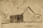 T. A. (Thomas) McCormack (1883 - 1973) arrived in Wellington from Napier in 1921 and soon found company among the artists at Pumpkin Cottage. The figure seated on the veranda is the lanky Nugent (Nuggy) Welch (1.83 metres tall). The old rose beside the painted pumpkin was planted sometime after 1914 by artist Flora Scales. McCormack more than likely printed this etching using a printing press gifted to the Wellington Art Club by the Dominion Museum. Museum staffer and Society of Seven members, James McDonald, also a keen printmaker, arranged the gift in about 1920.